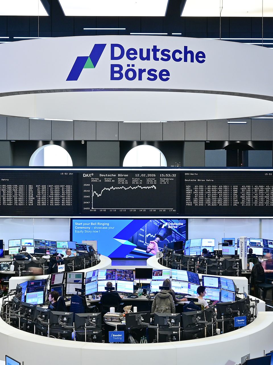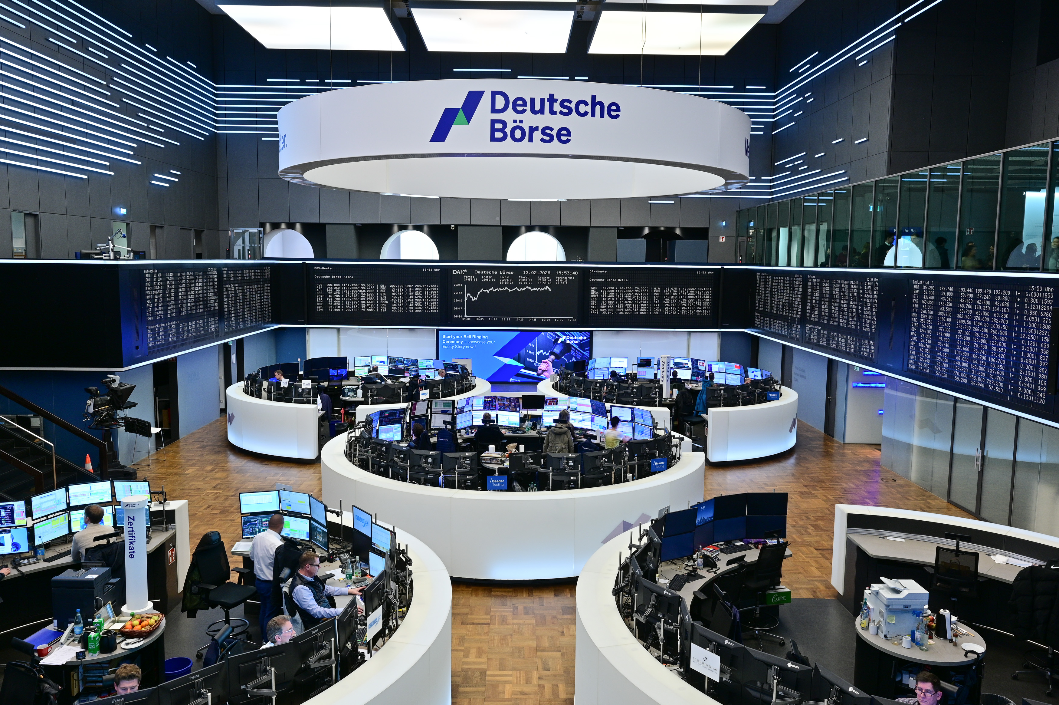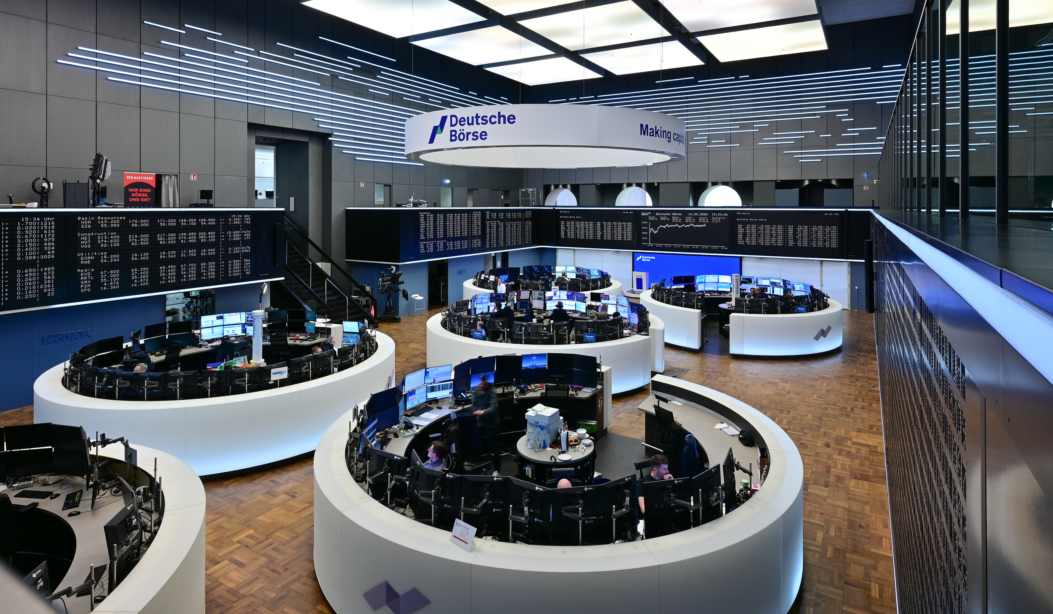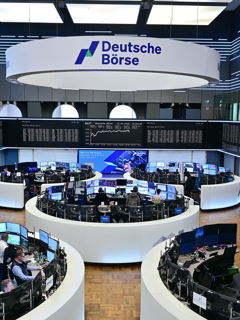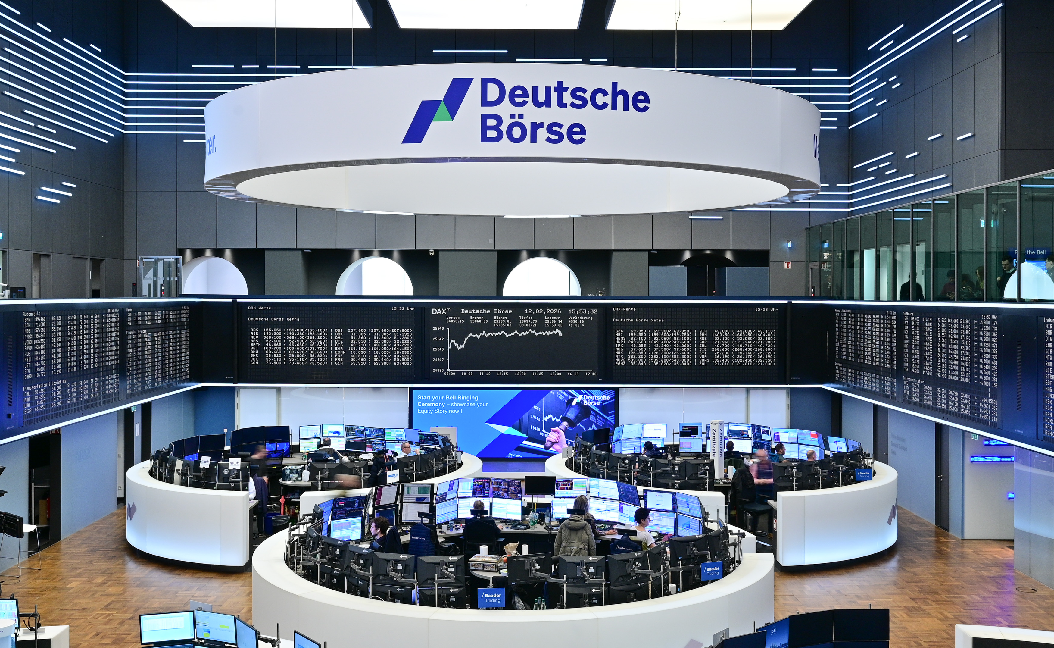 Here you can find images of Deutsche Börse Group as well as recent video and audio footage of the trading floor of Frankfurter Wertpapierbörse (FWB®, the Frankfurt Stock Exchange). The files may be used free of charge for journalistic purposes using the reference “Deutsche Börse Group” or the copyright notice included in the respective image is cited as the source. Use for any other commercial or own advertising purposes is not permitted.