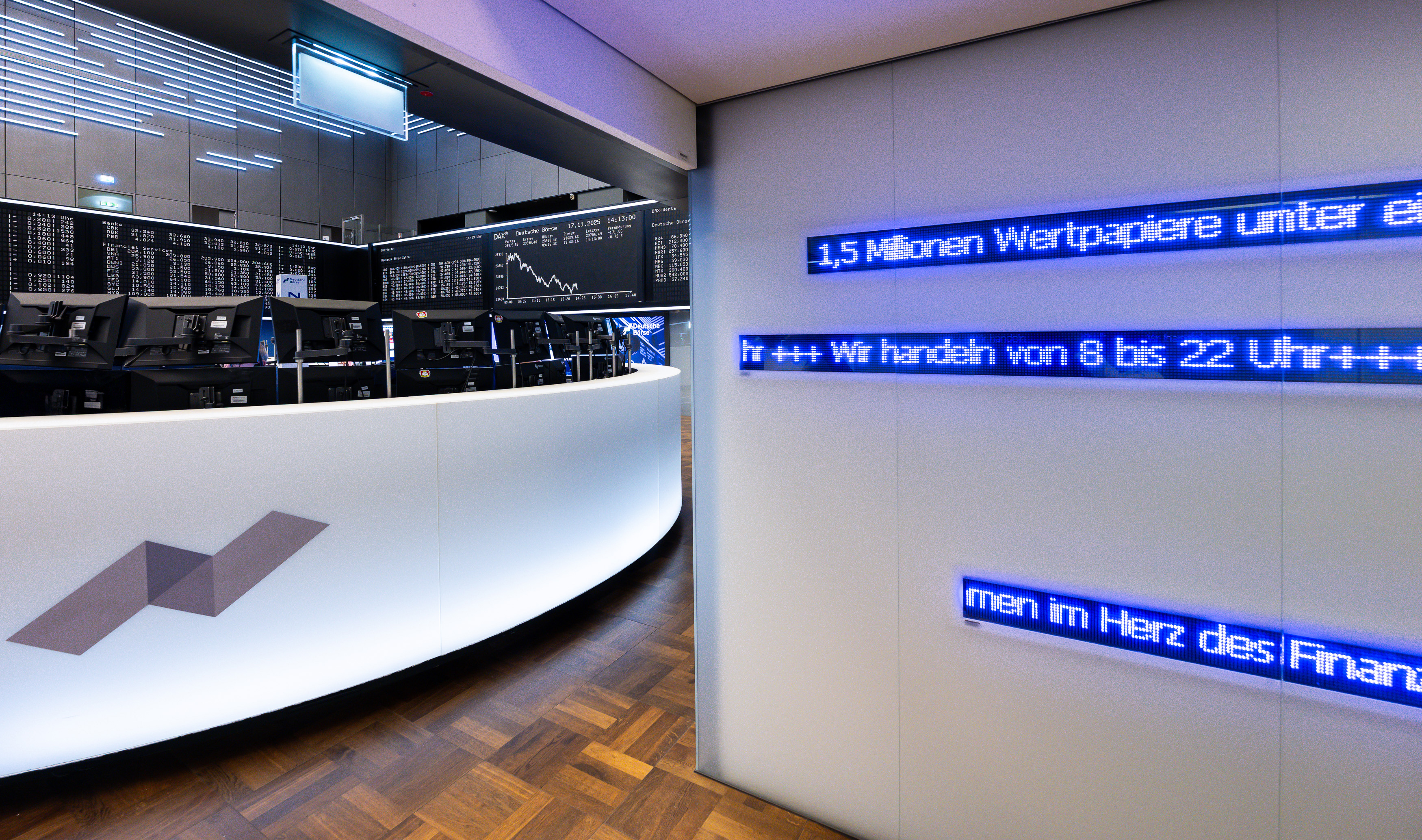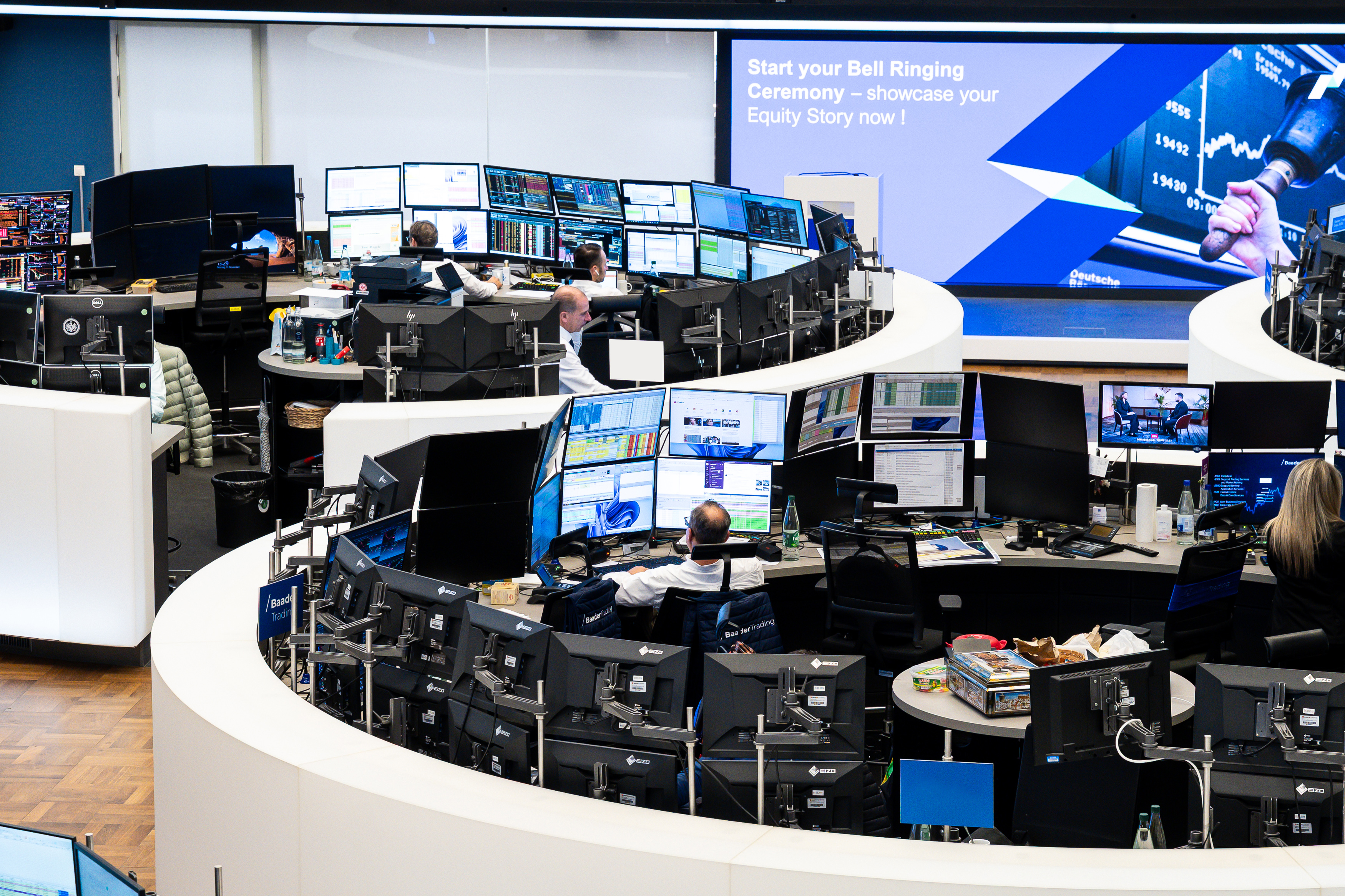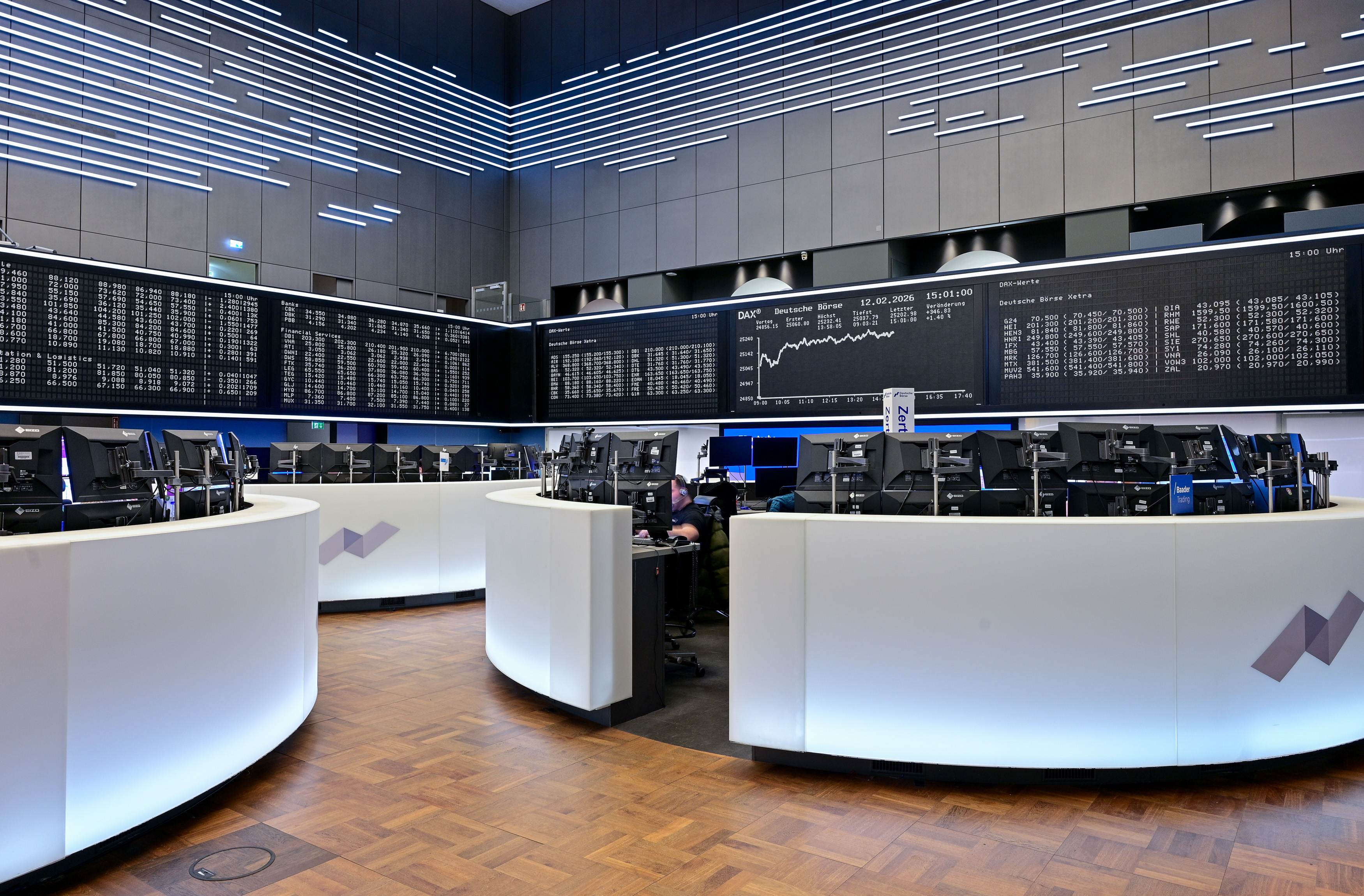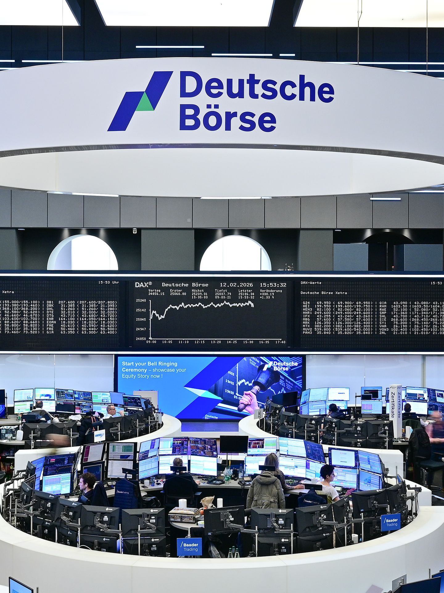 Here you can find images of Deutsche Börse Group as well as recent video and audio footage of the trading floor of Frankfurter Wertpapierbörse (FWB®, the Frankfurt Stock Exchange). The files may be used free of charge for journalistic purposes using the reference “Deutsche Börse Group” or the copyright notice included in the respective image is cited as the source. Use for any other commercial or own advertising purposes is not permitted.