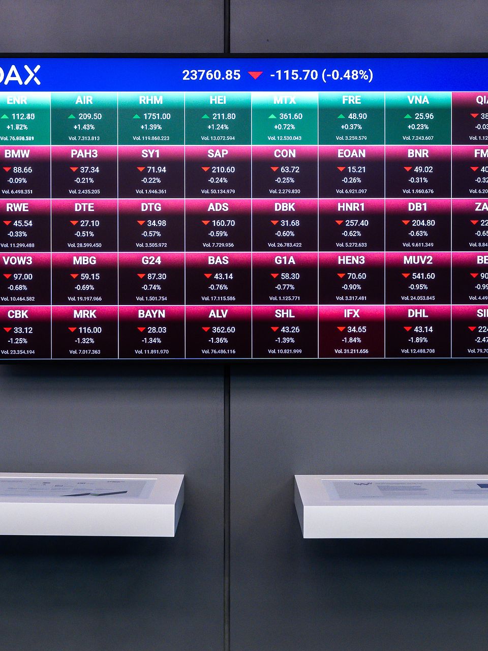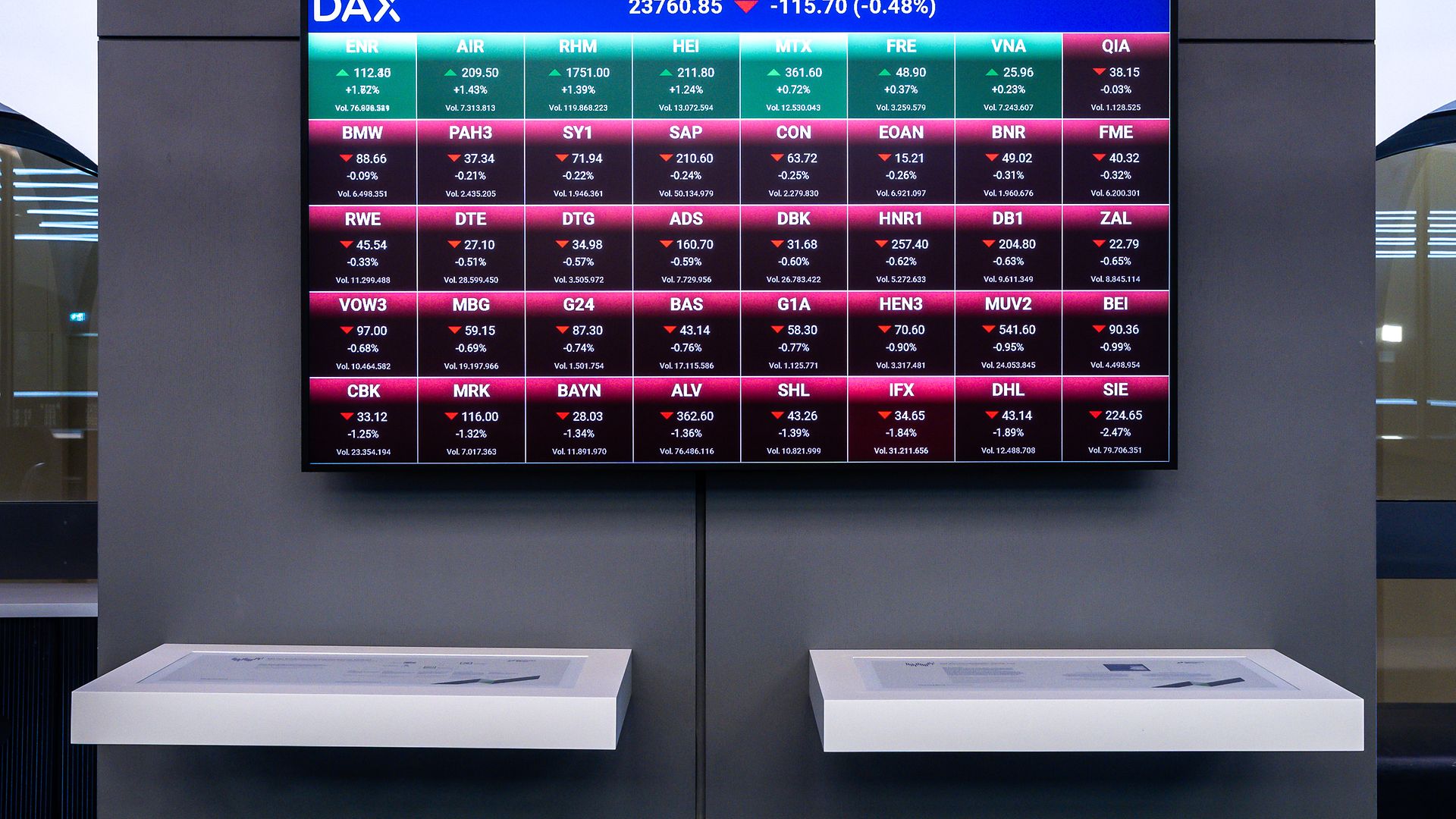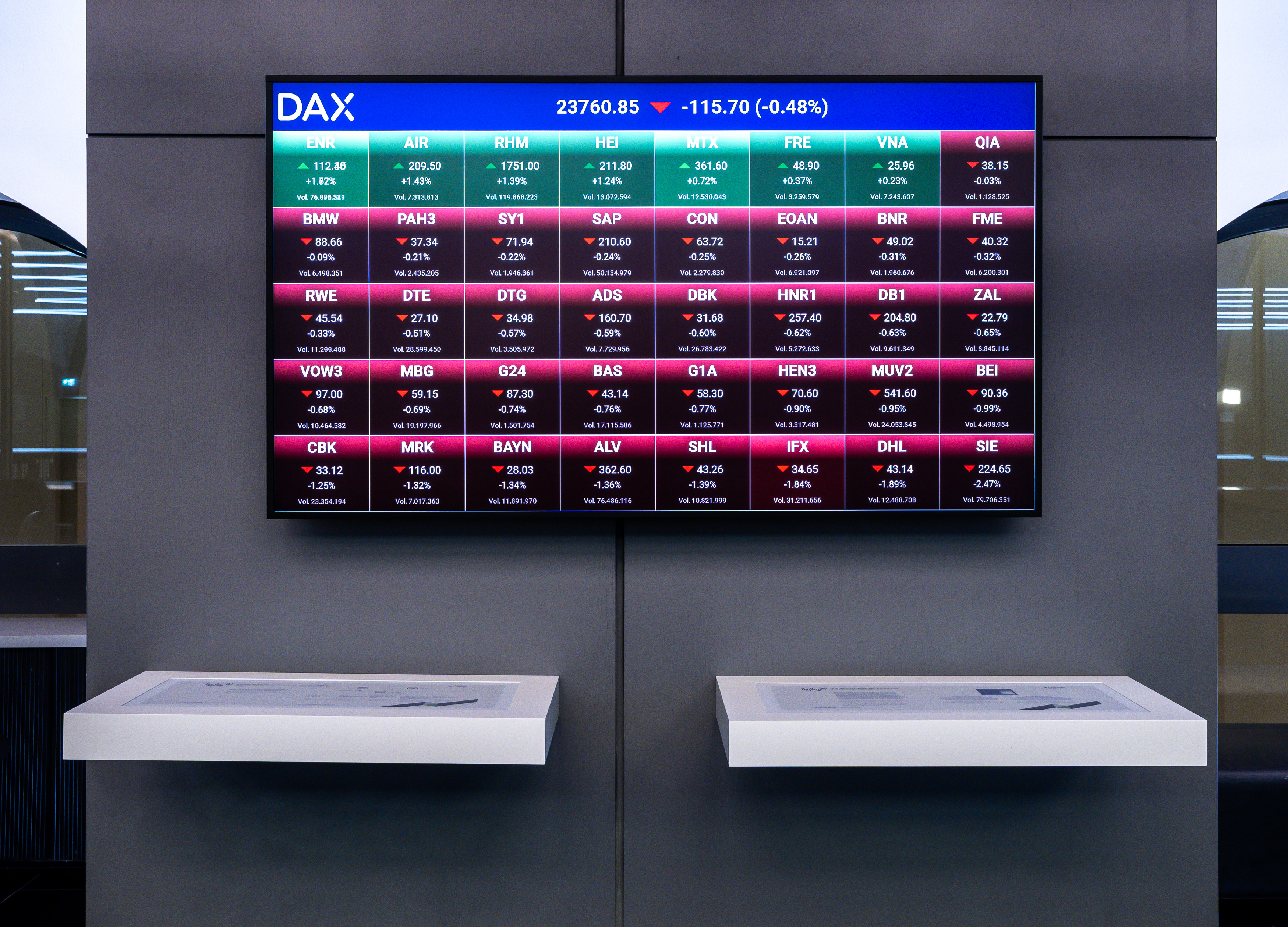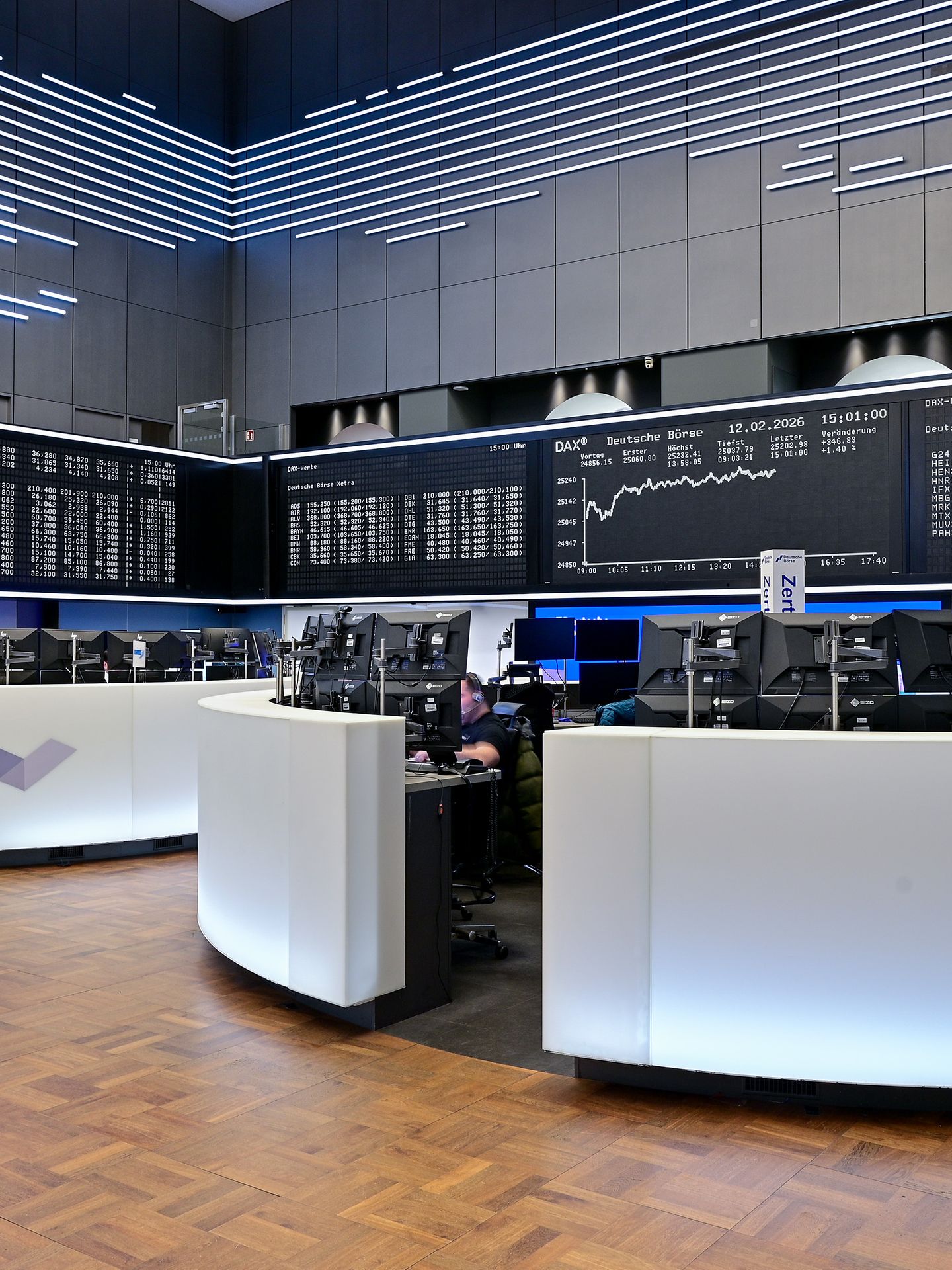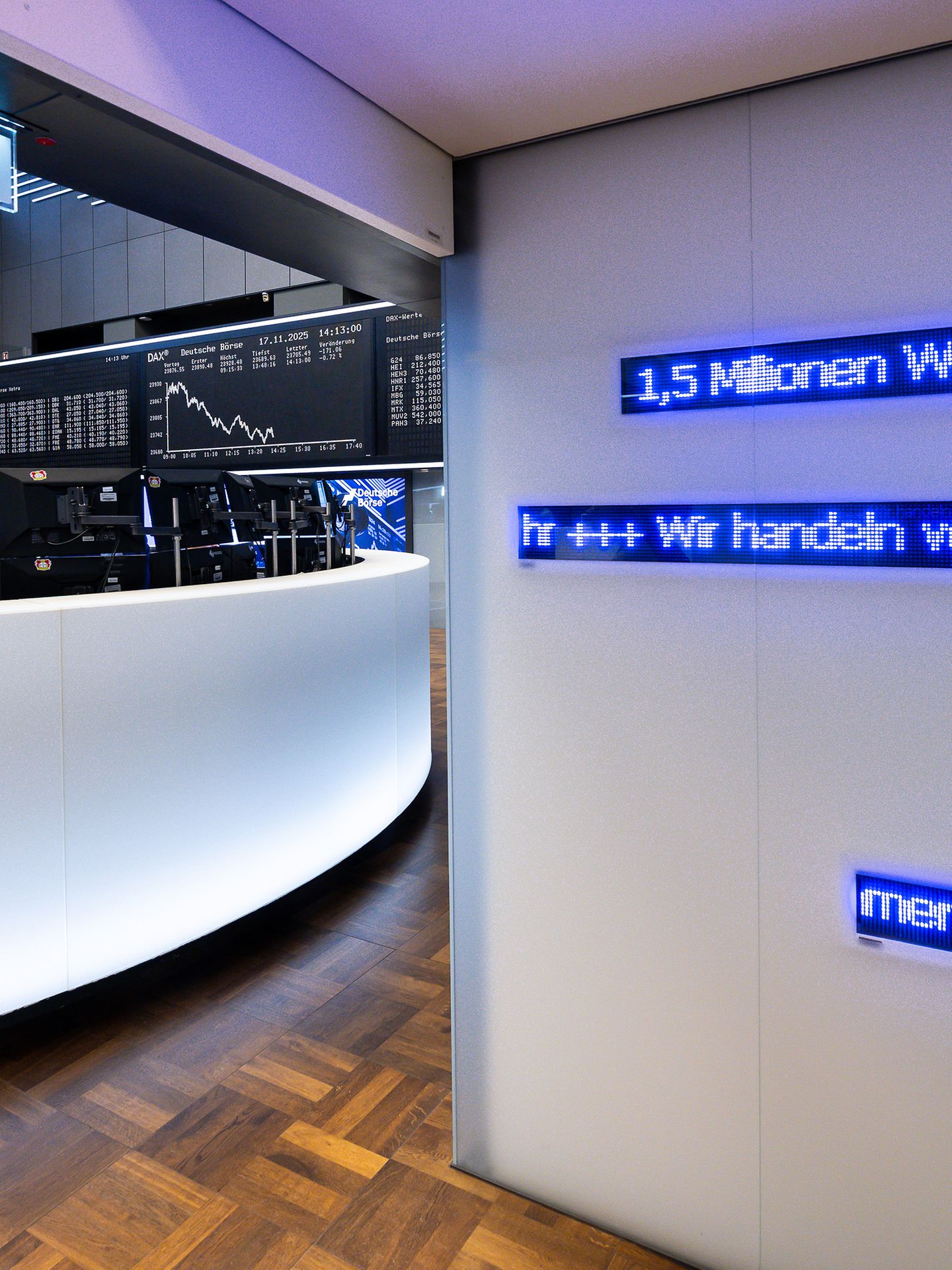 Here you can find images of Deutsche Börse Group as well as recent video and audio footage of the trading floor of Frankfurter Wertpapierbörse (FWB®, the Frankfurt Stock Exchange). The files may be used free of charge for journalistic purposes using the reference “Deutsche Börse Group” or the copyright notice included in the respective image is cited as the source. Use for any other commercial or own advertising purposes is not permitted.