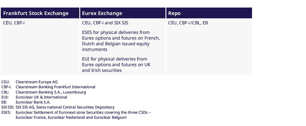 We give customers greater choice when setting up their account infrastructures. The Clearing House supports a variety of Central Security Depositories.