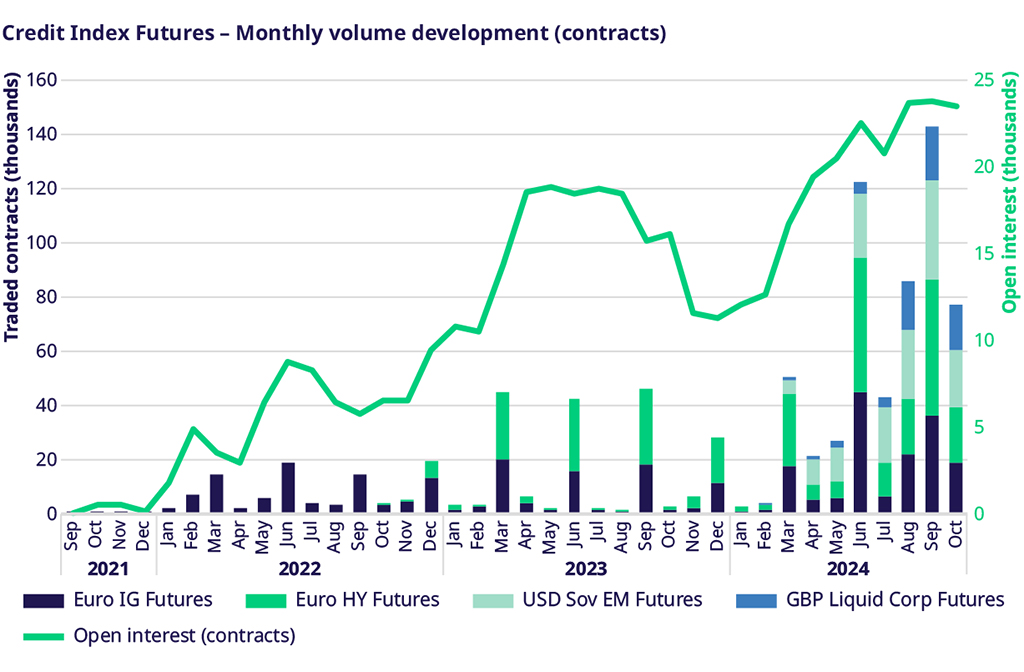 For many years, large derivatives exchanges have tried – and failed – to get credit futures off the ground. This year, Eurex finally pulled it off. Its credit futures contract, launched three years ago, caught fire in the second half of 2024, boosted by increasing participation from buy-side investors, favourable tailwinds and thoughtful product design in alliance with market participants.