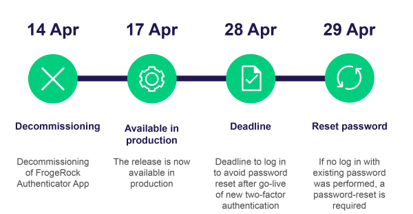 Reset password | Please note that those users who have not logged in between the rollout on 17 April 2023 and by the close of business 28 April 2023, will be required to firstly reset their password followed by the setup of the new two-factor authentication process. | If you have not logged in between 17 - 28 April 2023, please follow these steps to change your password: